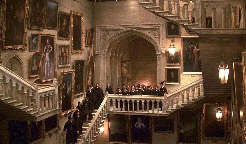 Ainda que muito mais plana, polida e segura do que na visão de seus sucessores, a escola de magia com suas 142 escadas que se movem, seus quadros que se mexem e seu saguão com um teto que simula um céu, é de encher os olhos.